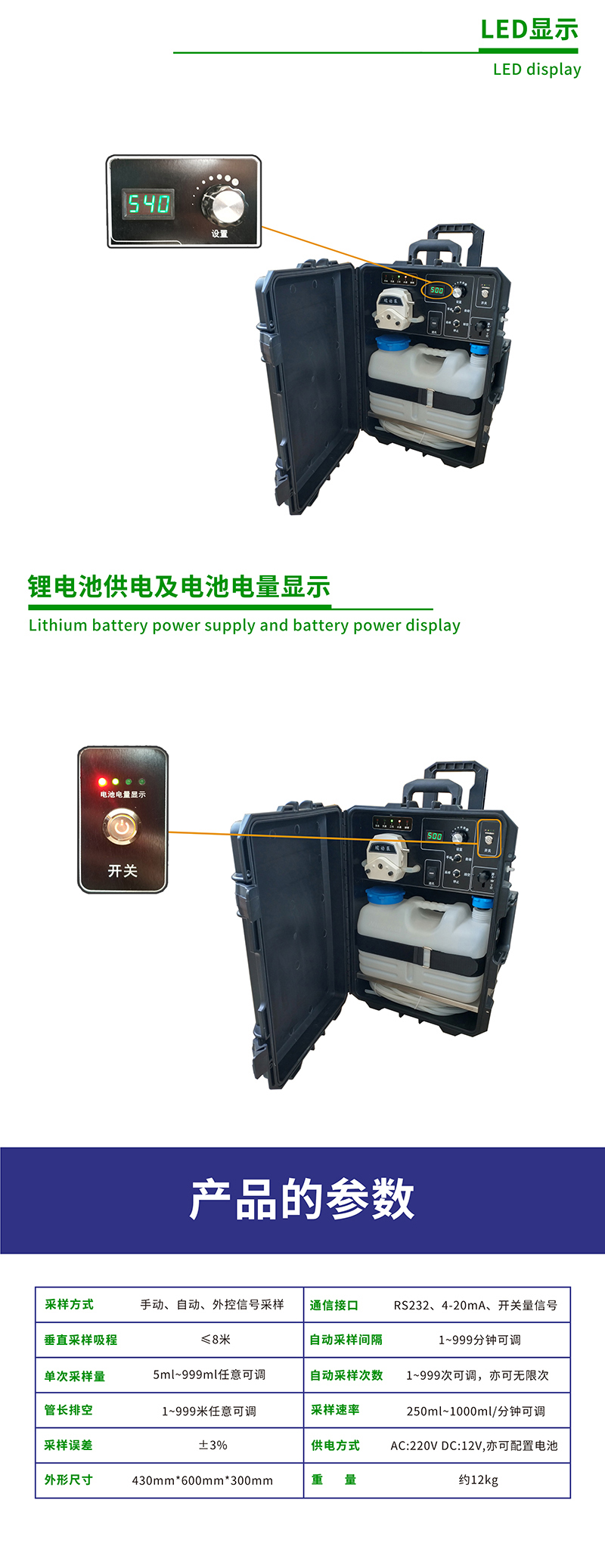 4. 單次采樣量:5ml至999ml任意可調(diào),增量1ml;