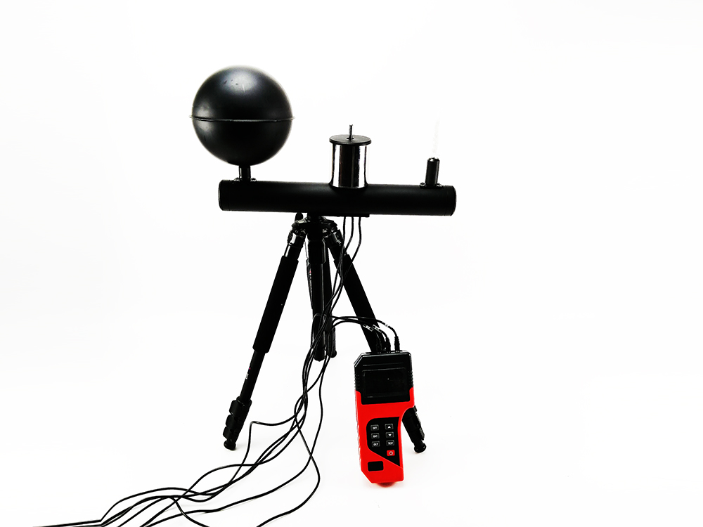 濕球黑球溫度(WBGT)指數(shù)是用來評(píng)價(jià)高溫車間氣象條件的,它綜合考慮空氣溫度、空氣濕度、風(fēng)速和輻射熱四個(gè)因素。WBGT是由自然濕球、黑球、干球、三個(gè)部分構(gòu)成的。其中黑球溫度讀數(shù)受空氣濕度、風(fēng)速、輻射熱和空氣溫度的影響。