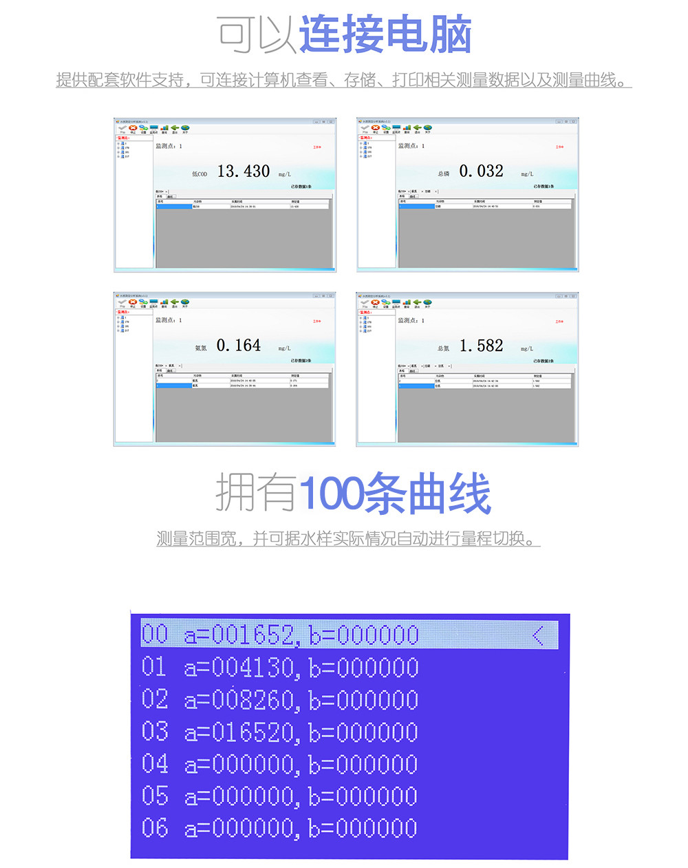 4. 1點(diǎn)至7點(diǎn)校正模式,自動(dòng)計(jì)算斜率、截距及相關(guān)系數(shù),測(cè)量精度高。